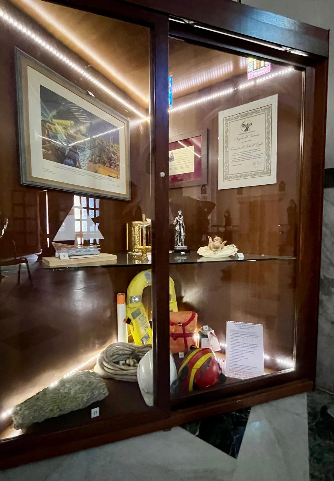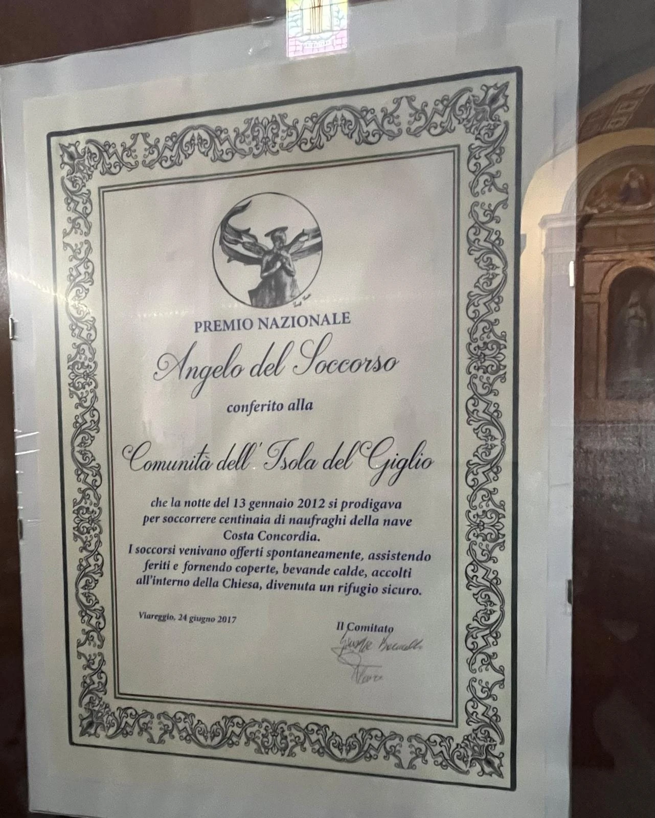 Nella Chiesa di San Lorenzo, a Giglio Porto, sono custoditi alcuni resti sacri recuperati dalla cappella della Concordia. Salvati dal relitto, sono oggi un simbolo silenzioso di ciò che è stato. Una scelta che dice molto: