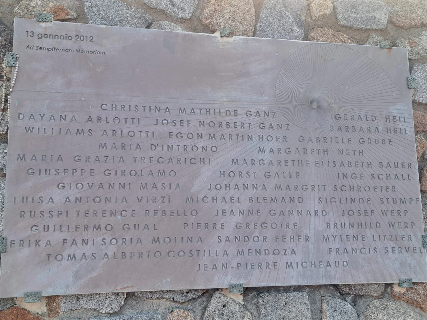 Durante uno dei nostri trekking con Giulia, la nostra accompagnatrice escursionistica nonchè Bussola, dall’alto di un sentiero, abbiamo visto il punto preciso dove la nave si è adagiata sul fianco, squarciandosi. Inizialmente avevamo quasi pudore a parlarne, ma il pensiero si è subito spostato: dalla tragedia alla comunità.