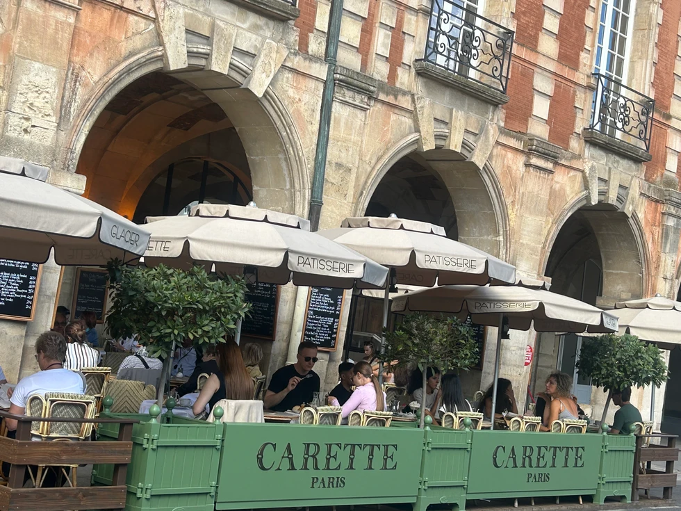 E' un caldo pomeriggio di inizio settembre quando entriamo su Place de Vosges che con la sue atmosfere calde ed eleganti ci accoglie. I tetti d'ardesia spioventi delle dimore allineate sul perimetro, i mattoni rossi e le arcate di pietra dorata dei portici leggermente ribassati sono inconfondibili; le botteghe che si susseguono ed il vociare della gente nei giardini al centro della piazza all'ombra della statua di Enrico IV, sono un corollario perfetto a cui toglierei solo quelle auto parcheggiate o in transito che rovinano la poesia senza tempo. Qui mi siedo in un tavolino di Carette per godermi una Delice aux framboises ed un caffè in tazza grande. Per me Place des Vosges significa regalarmi un momento da Carette e viceversa, un attimo di contemplazione di quel microcosmo che è il Marais. Il Marais mi inebria con i sentori sensuali e intriganti delle botteghe di raffinati profumi che accompagnano il tuo passeggio tra vetrine curiose e locali arcobaleno che portano allegria al quartiere a tutte le ore del giorno e della notte. Ristorantini Kosher, giardini segreti, piccoli musei in sontuosi palazzi con eleganti bistrot. Qui le regole del vestire svaniscono e tutto diventa possibile, ma rimane d'obbligo una certa raffinata eccentricità che deve fare i conti con il fatto che Parigi e pur sempre capitale della moda e dell'estetica fru-fru. Che sia un baschetto rosso, una maglia a righe bianca e blu, un accessorio vintage o un total black... tutti i linguaggi sono ammessi e diventano meravigliosi da vedere in uno spettacolo umano libero, leggero e sognante. Il Marais offre opportunità per soggiornarvi lungamente, ma indipendentemente dal tempo che avrete a disposizione se qui vi annoierete allora ritenetevi non all'altezza del quartiere. Se invece volete sentirvi liberi, uscite ed immaginate cosa vi potrebbe fare sentire liberi e concetetevi queste meravigliosa esperienza...la libertà del Marais.