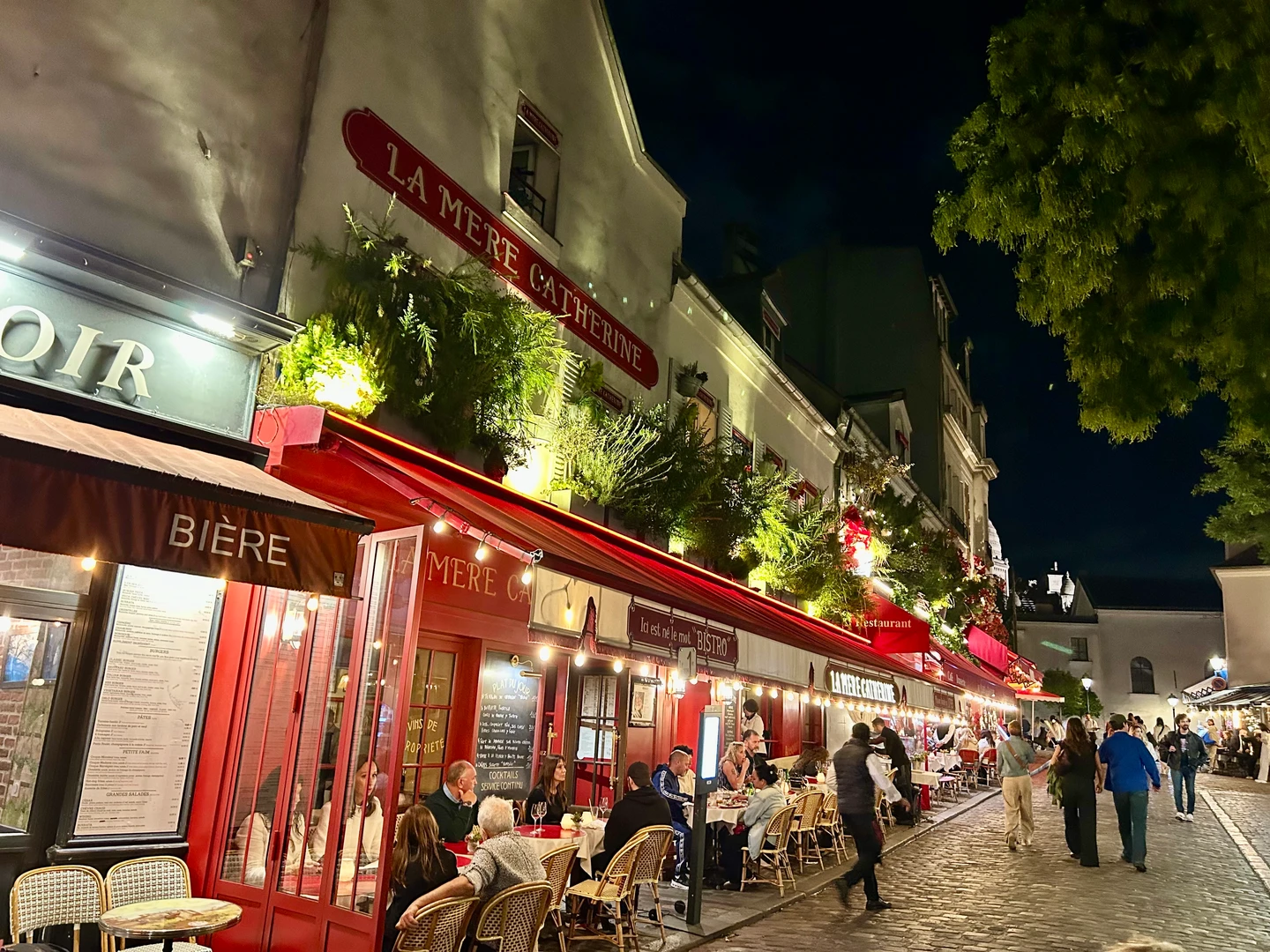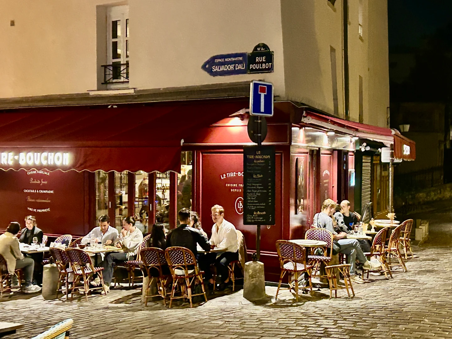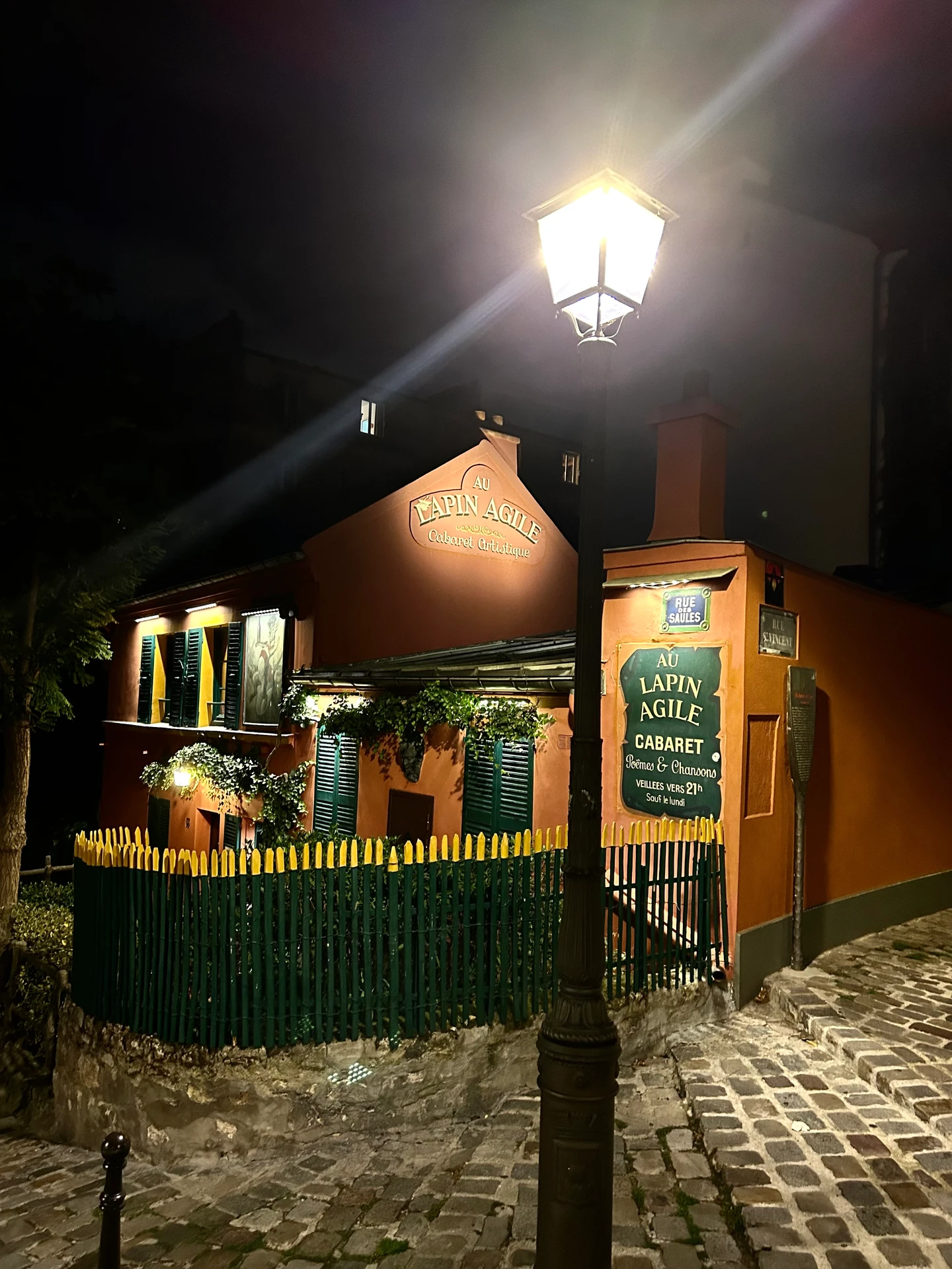 Al Lapin Agile le movenze, l’ironia, l’amore per la città che trasuda nel carillon di esibizioni, quell’atmosfera informale dove ti trovi seduto al tuo tavolo al fianco di uno/una chansonnier (non potrei definirli differentemente) che con te interagisce e ti trasporta nella Parigi dei cantautori. Esci ed i lampioncini sulle ripide discese con i mancorrenti che segnano le pendenze con una doppia linea parallela sono esattamente la Montmartre che sognavi e che ancora “debolmente” esiste. All’emozione di quelle poche stanzette piene di parole, note e storie riesci persino a dimenticare la Montmartre sbagliata ovvero quella del turismo chiassoso che si accalca a Place de Tartre, o sulla gradinate del Sacro Cuore alla ricerca dell’ultimo selfie e così poco interessato all’anima che ha reso grande questo pezzo di città.
