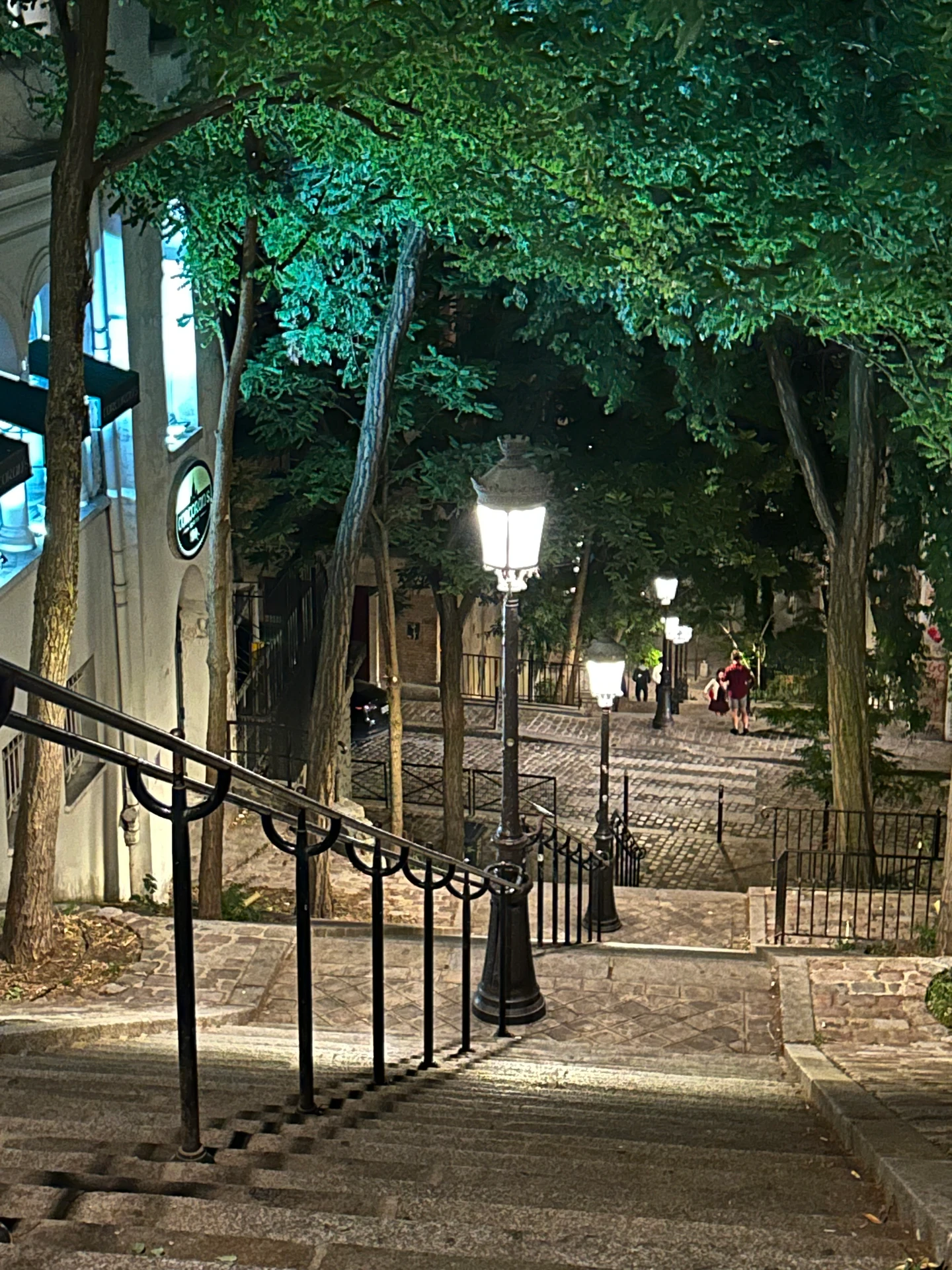 Complice la notte e l’ora tarda, le strade si svuotano e le luci dei lampioni belle époque sono tutte per noi, che riusciamo addirittura a fare quegli scatti che nel pomeriggio furono impossibili, ma soprattutto riusciamo a contemplare la città, ad immaginare pittori, artisti e personaggi che vissero e calcarono i marciapiedi di Montmartre rendendola mitica.