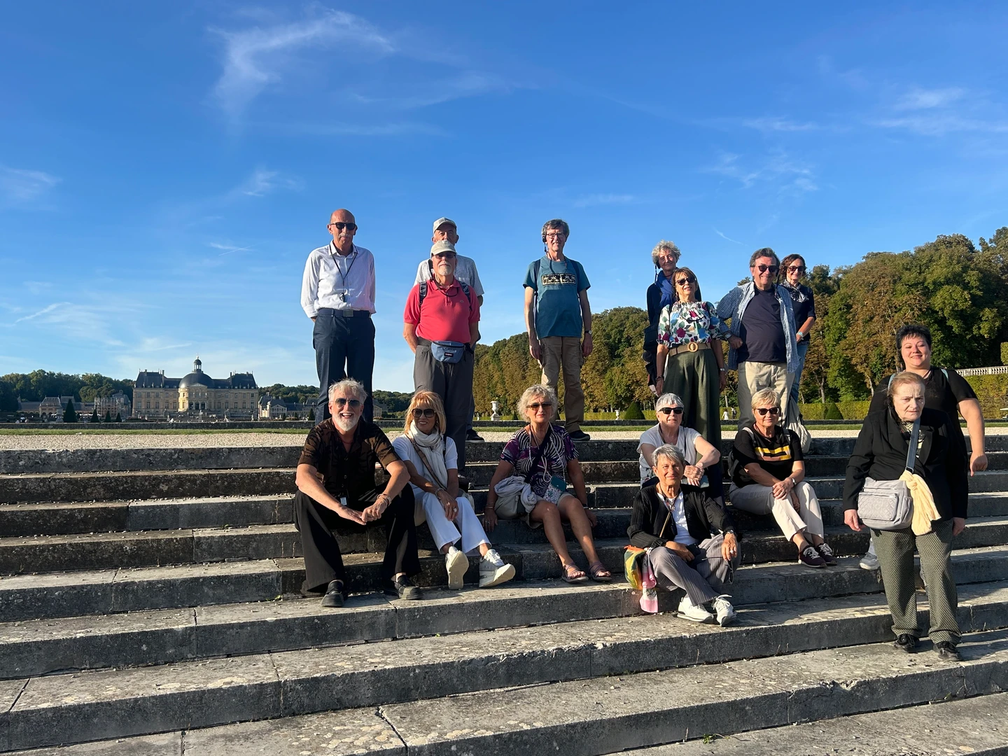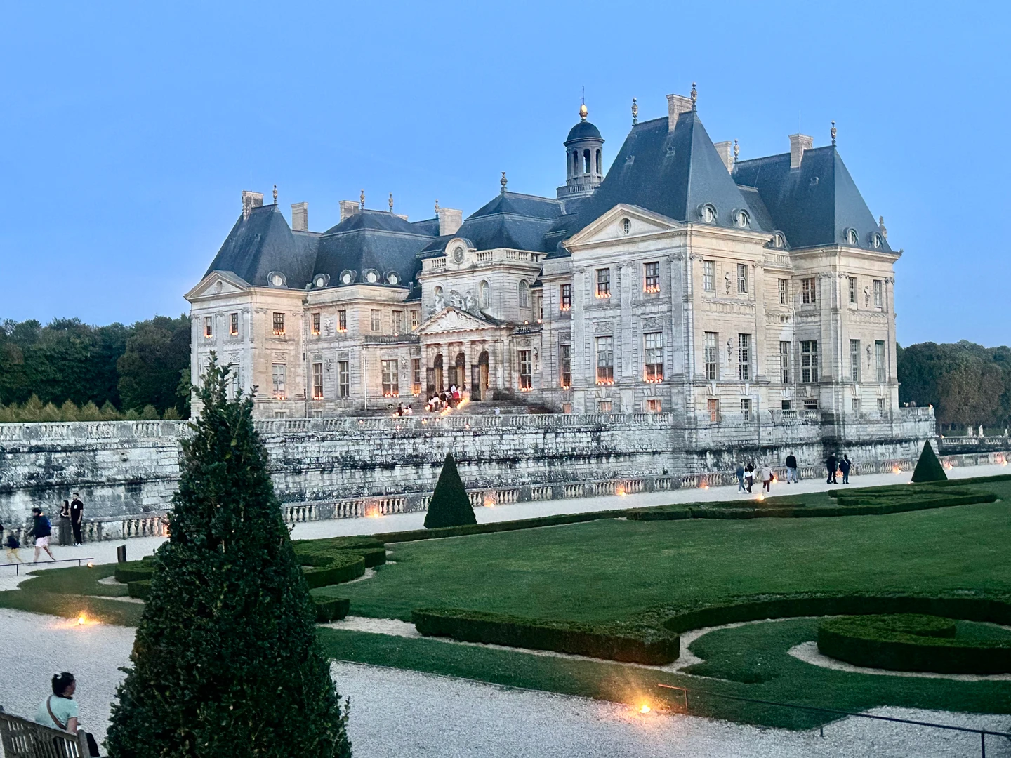 Ho il piacere di presentarvi Jean-Charles Le Vogüé, da cinque generazioni impegnato nella cura e valorizzazione di Vaux Le Vicomte che questa sera (il 6 settembre 2025) ha trovato il tempo per accoglierci ed augurarci una buona serata. Jean-Charles ci regala un momento di protagonismo che ci appaga anche per avere dichiarato il suo sangue italiano grazie alla madre Cristina Colonna di Palliano. Insomma, come per una inaspettata connessione empatica, ci sentiamo quasi a casa, ma soprattutto abbiamo lasciato la sensazione di essere visitatori di un museo per diventare ospiti di una serata davvero speciale ed iniziata con aristocratica eleganza. Il prosieguo non è di certo meno appagante e domani come faremo a meno di sentirci principi a corte? Anche questo è tutta colpa della strana assuefazione che Parigi ti provoca.