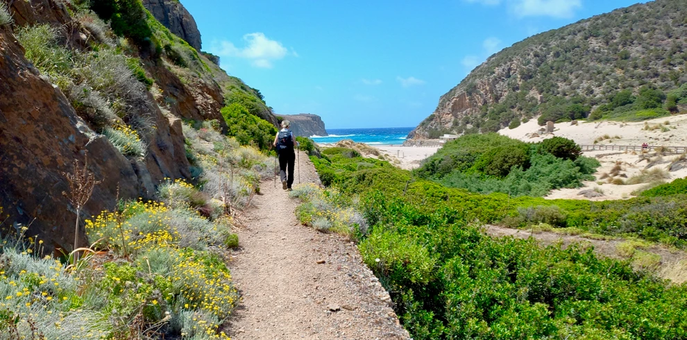 L’arrivo è a Portixeddu, una località tranquilla famosa per la sua lunga spiaggia di sabbia dorata e per il sistema di dune naturali. Qui il cammino termina davanti al mare aperto ed il contrasto tra la montagna percorsa durante la giornata e la distesa della spiaggia rende la conclusione della tappa particolarmente suggestiva. Seconda colazione libera.